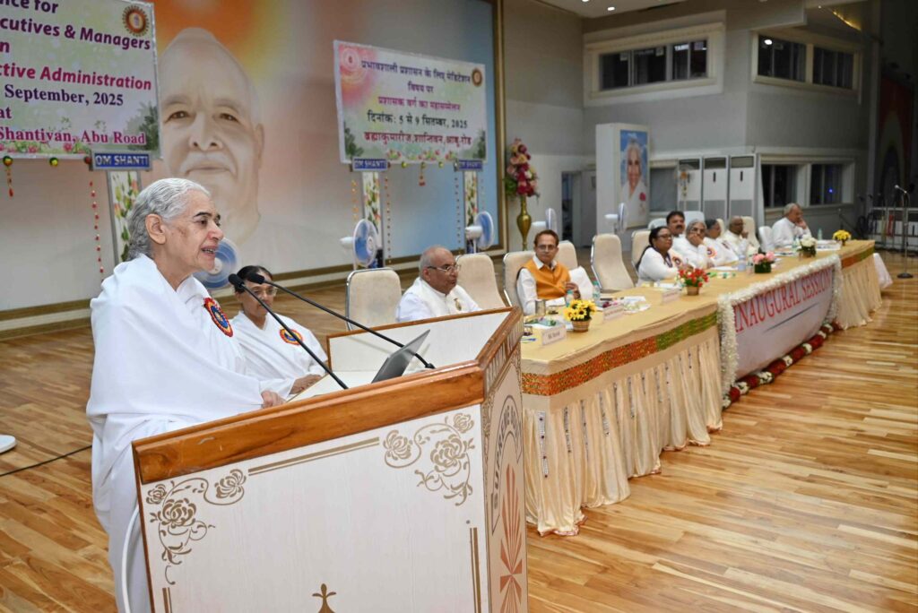 प्रशासक सेवा प्रभाग की अध्यक्ष राजयोगिनी ब्रह्माकुमारी आशा दीदी ने कहा कि प्रशासन करना एक कला है। एक अच्छे प्रशासक में ईमानदारी, सत्यनिष्ठा और अनुशासन का होना जरूरी है। उसके अन्दर मानवता और धैर्यता भी जरूरी है। हर राज्य में लोक प्रशासन सिखाने वाली संस्थाएं हैं लेकिन इन जरूरी गुणों को धारण करने के लिए शिक्षा देने वाली कोई संस्था नहीं है। चुनौतियों और समस्याओं का सामना कर जब आप उन पर विजयी होते हैं तब अनूठा मानसिक संतोष प्राप्त होता है। राजयोग मेडिटेशन से हमें तीन बातें प्राप्त होती हैं- पहला हमें अपने निज स्वरूप की पहचान मिलती है। दूसरा हमारे संबंध सुधरने लगते हैं। मन और बुद्धि साफ होने से हमारी निर्णय क्षमता बढ़ने लगती है। इससे रचनात्मकता बढ़ती है। तीसरा कर्मयोगी जीवन बन जाता है, जिससे कर्म और योग का संतुलन करना सीख जाते हैं।