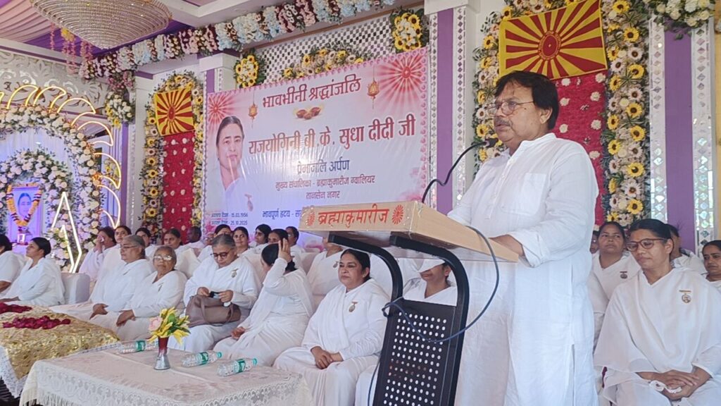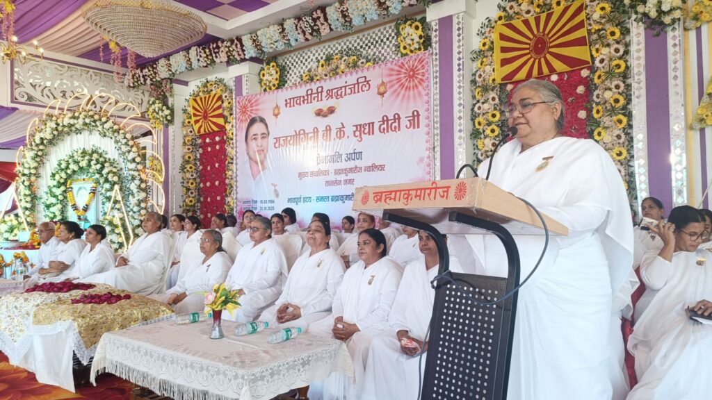 ग्वालियर, 5 नवम्बर2025।। प्रजापिता ब्रह्माकुमारी ईश्वरीय विश्व विद्यालय ग्वालियर तानसेन नगर केंद्र की संचालिका राजयोगिनी ब्रह्माकुमारी सुधा दीदी को प्रदेश के उर्जा मंत्री प्रदुमन सिंह तोमर सहित प्रदेश भर से पधारे सैकड़ों लोंगो ने उन्हें श्रद्धांजलि दी।